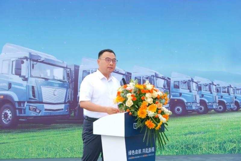 6 月 13 日,远程258台新能源重卡在浙江建德圆满交付腾骅控股集团,此次大批量交付,将为电动重卡在浙江大宗物流运输的规模化应用起到示范作用,助力交通运输零碳升级,同时现场双方又达成500 台订单签约。远程新能源商用车集团副总裁郭磊,副总裁赵杰,腾骅控股集团
