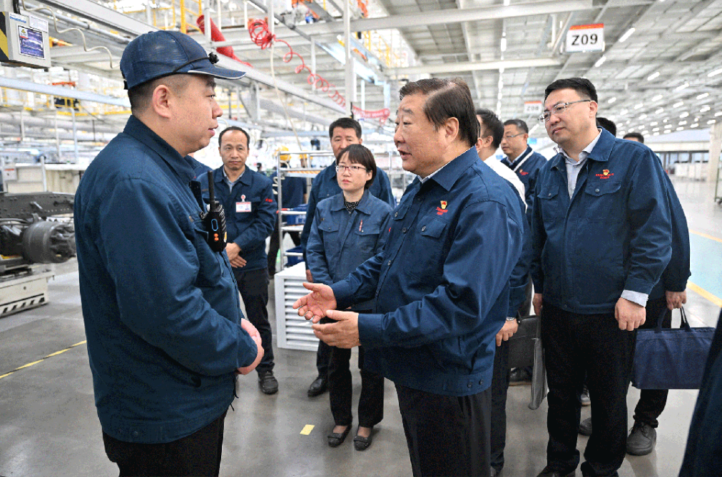 11月1日上午,谭旭光到中国重汽济南莱芜智能网联(新能源)重卡制造基地现场调研,并召开一线产品质量提升座谈会,围绕当前市场订单供不应求的高产形势,要求全力保障好产品质量、全面提升智能化制造水平。谭旭光在总装、涂装、焊接车间现场与一线岗位员工面对面交流,详细了解