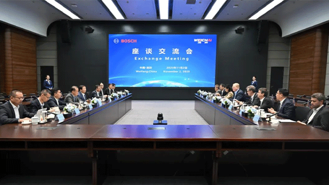 11月2日下午,德国博世集团董事会主席史蒂凡·哈通一行访问潍柴集团,山东重工集团董事长、潍柴动力董事长谭旭光陪同参观并座谈交流。史蒂凡·哈通一行参观了潍柴大缸径高端高速发动机工厂、高端重型发动机智能制造工厂、中央研究院、产品试验测试中心、增材创新中心、材料成型