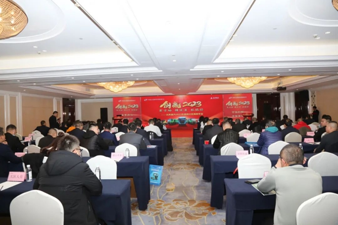 金兔迎春逢盛世,诗意杭州奏凯歌。2023年2月24日,北奔重汽在杭州召开以“创赢2023 聚市场 强渠道 抓路径”为主题的2023年华东大区商务年会。北奔重汽副总经理吕利萍,营销公司总经理董辉强及相关部门领导,银行和金融机构、新能源产业链代表、80余家经销商、