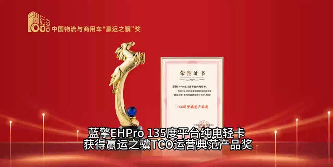 蓝擎EHRro 135度平台纯电轻卡 获得赢运之骥TCO运营典范产品奖