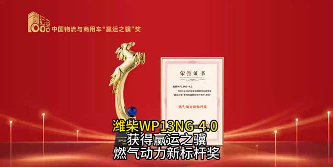 潍柴WP13NG-4.0 获赢运之骥燃气动力新标杆奖