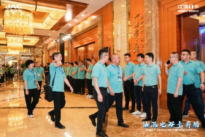 活动现场,江淮1卡八大产品品牌涉及油、混、电、气等多条技术路线的22款新品重磅亮相,安徽江淮汽车集团控股有限公司党委书记、董事长、总经理项兴初,安徽江淮汽车集团控股有限公司党委副书记、工会主席、董事许远怀,安徽江淮汽车集团股份有限公司总经理李明,张默闻策划集团董事长张默闻等领导嘉宾共同出席,一同点亮江淮1van品牌LOGO,与用户一起,共创中国轻型物流车全新品牌。