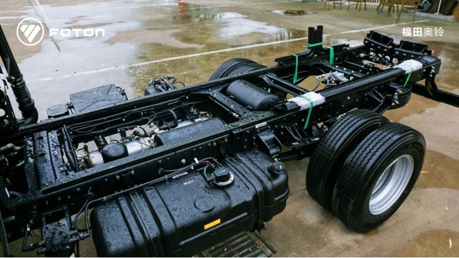 承载方面,燕尾梁升级为高强钢直通梁,车架加宽到760mm,车架材质由510L升级至610L,车身强度更高,行驶更稳定。