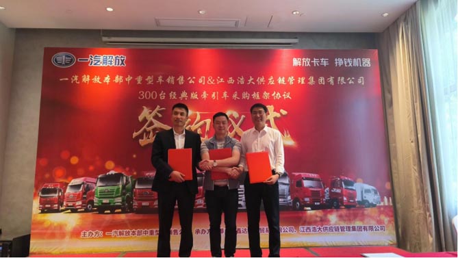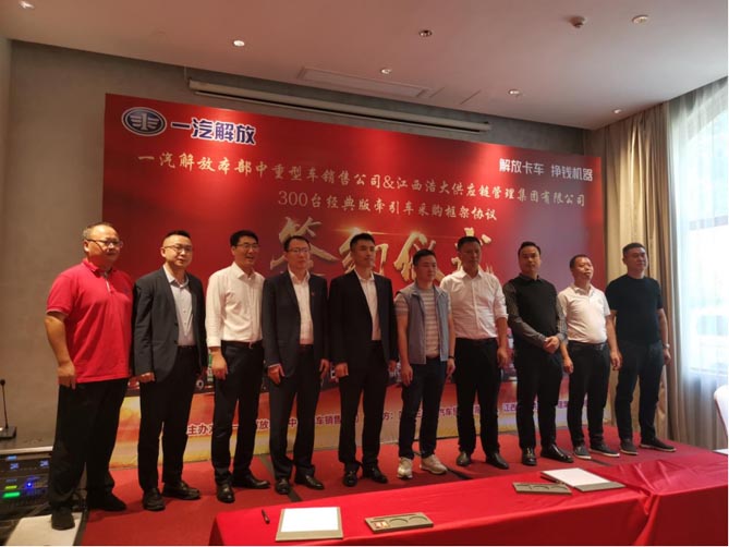 解放营销再添新绩—— 300台J6P经典版牵引车采购合作框架签约