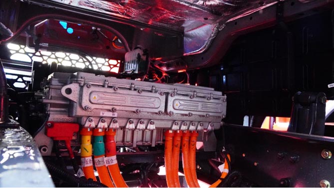 矿区运输载荷重、频次高,还面临恶劣的工况条件,因此必须具备强劲的动力链。乘龙H5换电牵引车采用大功率、大扭矩电机,峰值功率405kw,最大扭矩2400牛米,扭矩大,动力强。并且应用扁线电机驱动技术,功率增加20-30%,体积减小,质量更轻,节能降耗。并且采用全铝EMT变速箱,应用智能换挡控制技术,操纵更平顺。