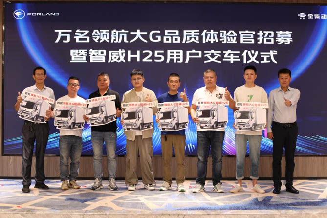 领航大G在提升车辆性能的同时,注重用户价值,致力于提供更舒适、便捷的驾驶体验,并为货运行业带来经济实惠的创富方案。紧接着,活动举行了万名领航大G品质体验官招募及智威H25用户交车仪式。由领航营销公司浙江大区总监张祖良为7位用户颁发荣耀金钥匙,这不仅是对他们选择领航大G的信任与支持的肯定,更是开启了他们与领航大G共同创富的新篇章。