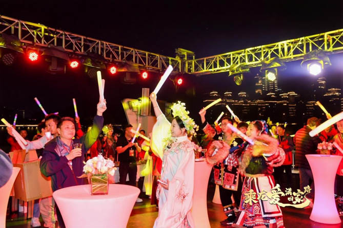 这场别具一格的温馨家宴,不仅有绚丽的百里柳江夜景、地道的柳州特色美食,还有充满民族风情的舞蹈和卡友共创表演节目。随着欢快的旋律响起,现场的气氛被迅速点燃,宾客们纷纷加入这场载歌载舞的盛宴之中,共同享受着这个充满热情和欢乐的时刻。