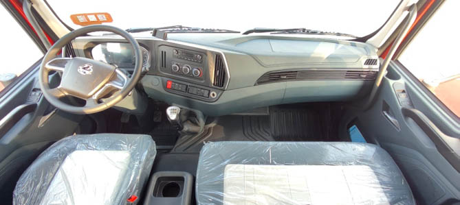 为应对城建运输的高强度作业需求,乘龙M3 6×2R提升桥自卸车配备超大驾驶室,内高达2.9米。并标配气囊减震座椅与电控硅油风扇,降尘、降噪、降油耗,驾乘环境佳,为卡友铺就健康致富之路。