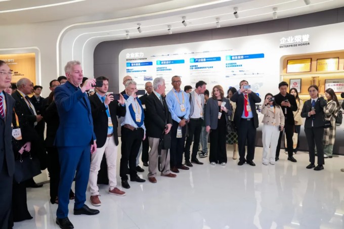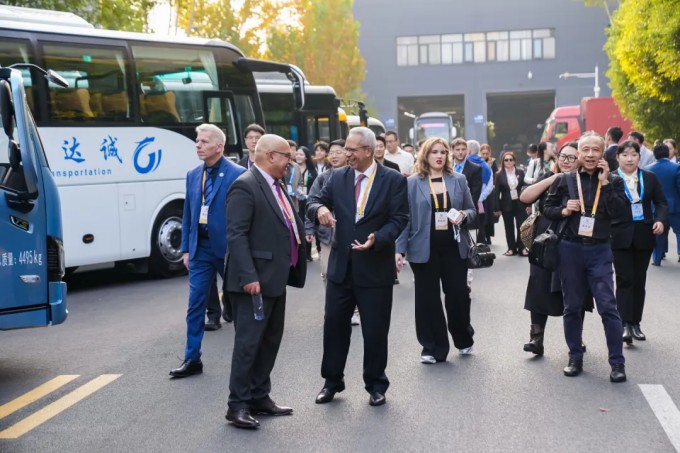 在会场之外,厄瓜多尔、牙买加和格林纳达等多国驻华大使、乌拉圭外交部副部长等重要政企代表、南南合作研修班成员共超300人分批走进宇通,进行参观考察,感受中国制造高质量发展的昂扬之姿。