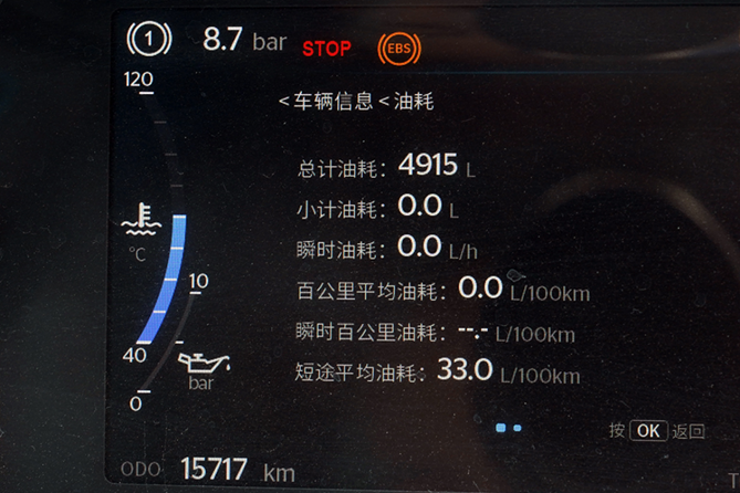 下午14:50,还是在银川市永宁县开发区,在中国重汽的某服务站,曾超为购买了不到一个月的黄河重卡做常规保养。数字显示,此时的车辆已经运行了15717公里。