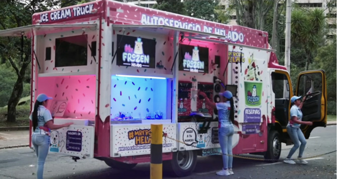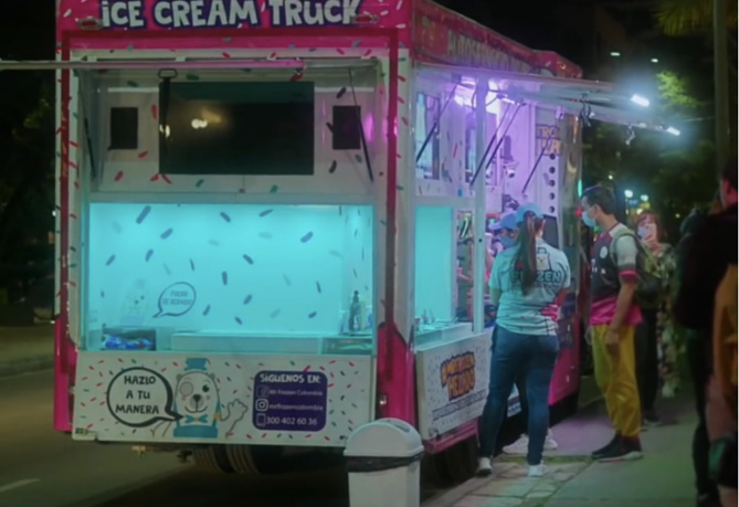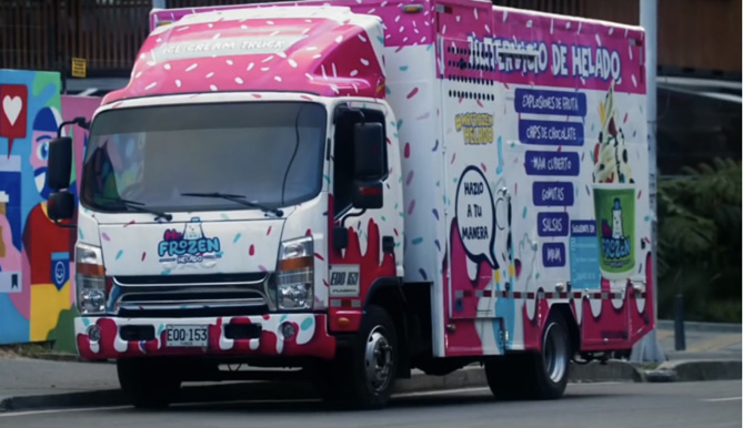 车辆准备完毕就可以营业了,“第一次营业是在波哥大,当时我只带了两个人,但排队买冰淇淋的队伍排成了一条长龙,两边的队伍都排了很多很多人。”第一次开张就取得了意料之外的成功,这也让Wendy López对自己的选择充满了信心。往后的日子里,她开着这辆国际帅铃走了很多地方,虽然哥伦比亚有很多冰淇淋店,但她的Mr.Frozen无论走到哪儿都是独一无二的。