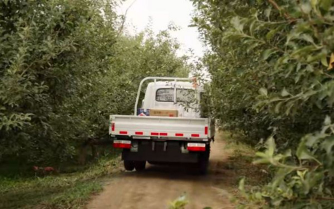 一切准备就绪后,他开着新买不久的东风途逸T5 CNG,出发去给果园配送农药。“我家里还有两台轻卡,但是车太宽了,这种小路进不来,东风途逸T5 CNG车身灵活方便,能直接开到田间,农药、苹果套袋直接可以扔在树下非常方便,而且货箱离地面低,我顺手就能把农药等抬下来,一个人操作很方便轻松。”刘洋对他的新车非常满意。