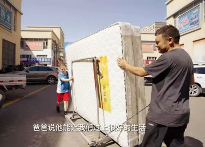 在别人一次只能拉5个床垫的时候,吐勒松江的东风途逸T5 CNG开始“内卷”:整车配备4030mm超长货箱,货箱宽1830mm,宽1米8长2米的床垫正好放2排,别说5个了,最多拉20个都没问题,床垫老板都乐意把活交给他做。货源多了,生意好了,加上气耗成本低至每公里3毛钱,吐勒松江的“教育小金库”蹭蹭涨起来,效率提升后,他也有时间多陪陪儿子了,一家人的生活愈发有滋有味。