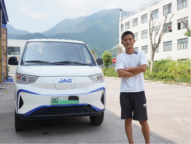 小陈师傅每天上午是比较忙的,下午一般会给江淮1van蓝猫充电,即便用公共快充桩,平均算下来一公里才2毛,“比油车肯定省钱多了”。小陈师傅每天得跑200多公里,江淮1van蓝猫的CLTC续航里程能达到276公里,满足日常运输没有问题。而且“我们这里随处都能找到充电桩,如果要再跑远一点,停车休息的时候随时都能充电,很方便。”