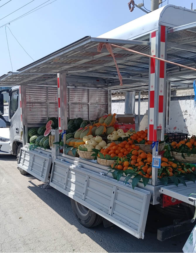 同时,领航大G翼展车的车厢空间非常大,王师傅所有售卖的水果都可以直接摆在车厢里,等到厢体一展开,他就相当于原地开了一家水果店,不用再和以前一样,还得花大量时间和精力在车边上支地摊。