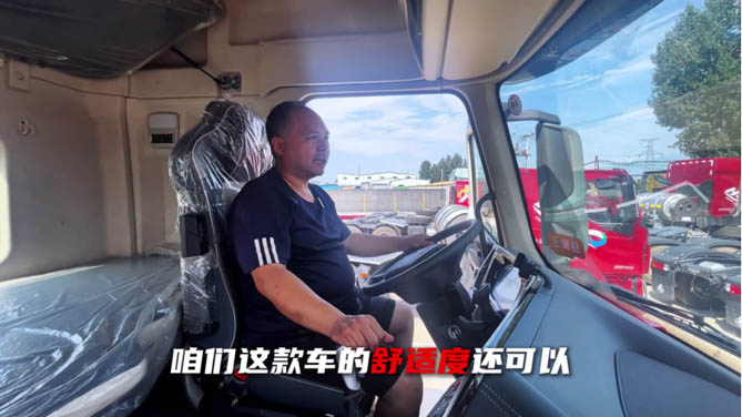 长途运输对于很多卡友来说都是一种挑战,不仅面临着多种路况的考验、货源不稳定的制约、长途跋涉的劳累,更对身体状况有更大的考验,“这车视野开阔,空间大,座椅也很舒服,带有气囊,久坐也不会腰疼。开了一天后,可以在宽敞柔软的卧铺睡上一觉,‌这也算是一种享受。”‌