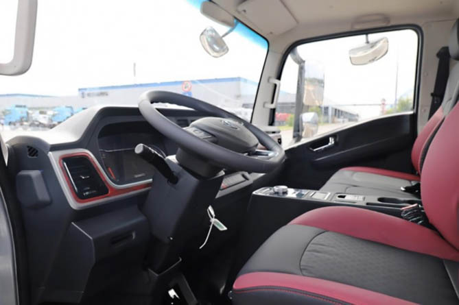 德龍G300-AMT多功能方向盘功能丰富,其中定速巡航让长途驾驶更轻松,还可连接10寸多媒体屏与倒车影像,操作便捷又安全。驾驶室配备的气囊主座椅,带有扶手和分体式头枕,即使长时间驾驶,也能保持舒适的坐姿,不会感到过度疲劳。车内配置的自动恒温空调、24V电源插座和USB快充接口等设置,进一步提升了卡友们的舒适性和便利性,为卡友们的日常生活带来了极大的方便。