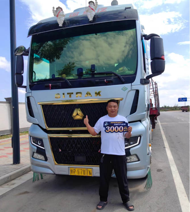 谈及重汽汕德卡G7H燃气车的气耗表现,李师傅更是信心满满,“跟其他品牌燃气车相比,每百公里能省气2公斤,这辆车的百公里平均气耗只有28公斤!每月轻松省3万”。汕德卡G7H燃气车已成为李师傅征途中披荆斩棘、勇破万难的坚实后盾,赋予李师傅坚定的信心迈向属于他的致富之路。