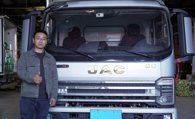 江淮1卡1号伙伴田涛,20年深耕物流运输行业,时常昼伏夜出,开着帅铃S9将一车车新鲜蔬菜,地方特产送达各地。