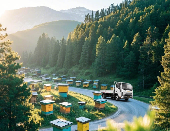 从山间花海到千家万户的餐桌,江淮1卡帅铃陪伴马师傅,运输着一车车蜂蜜,谱写出天山脚下的甜蜜乐章。