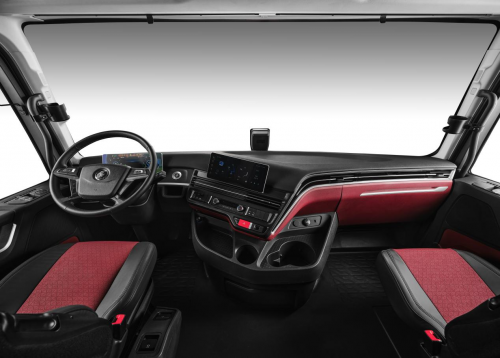 除此之外,车内配置也很丰富。12.3吋的全液晶仪表和中控大屏,操作方便,还能用智能语音控制,安全又便捷。2500W逆变电源、驻车空调、车载冰箱一应俱全,再加上驾驶室底部新增的隔热材料,配合优化后的发动机舱内空气流场,能有效阻挡热量传递。在夏季,卧铺温度可控制在28℃以内,行车途中无需停车等待,随时能在舒适的环境中休息,让漫长的旅途不再疲惫。