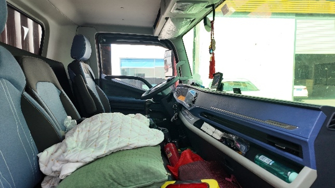 在动力方面,时代领航大G-F28T气体机轻卡搭载F28T大排量涡轮增压发动机。最大马力190Ps,可轻松应对各种复杂路况。杨师傅告诉记者:“平时我们的主要路线是高速,也会有一部分国道,因为我们配送是点到点,直接送达到散户手里,所以也会有部分城市道路。这辆车平路上超车轻松,马力大的好处这会儿就很明显,一脚油门就超车。上坡路段也有劲儿,没有动力不足的情况。”