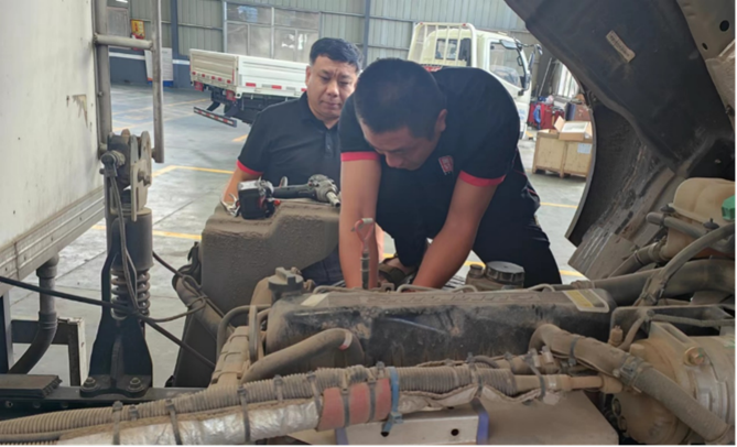 领导的嘱托,带给郑站长的既有压力,也有坚持到底的勇气和力量。服务站初创时人力不足,车间破旧,维修硬件差,客户资源更是屈指可数,难以获得客户的信赖,开展业务举步维艰。郑站长谈到:“我们一共五个人,第一次接触奥铃服务站,不知道怎么干,我是实干型的,不太会领导别人。不管晚上还是白天,只要有救援需求,我们就立即出发,我们风雨无阻都得去维修。”服务站的员工也感慨的说:“刚起步那段时间,郑站长带头亲力亲为,参与现场维修,他白天工作,晚上值班,并积极参与应急抢修,是个实干家,给我们树立了榜样!“郑站长带领团队拧成一股绳、聚成一股劲,高质量完成修理任务,改变了服务站的工作状态及服务面貌,赢得了客户的信任和依赖。
