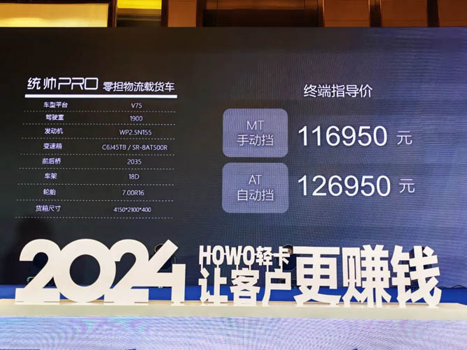 据介绍,目前中国物流运输市场纯电轻卡份额虽在增加,但因购置成本较高,残值较低,让很多个体司机望而却步。豪沃统帅PRO零担物流载货车手动挡产品售价116950元,自动挡产品126950元;商超快运厢式车手动挡产品售价122680元,自动挡产品132680。同时,购车享上市首发四大权益,包括前两百购车用户3000元抵8888元,前两千名购车享3年整车保养全免费,以及3大总成重要零部件终生质保、每月“逢9”优惠服务等购车福利,这将使广大用户投资成本再次降低。
