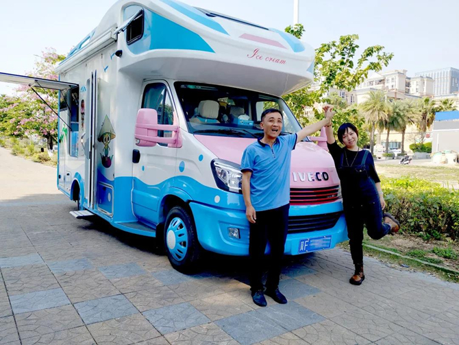 依维柯专业底盘扎实、舒适度高,非承载式车身设计也是一大特色。河北保定的谢卫华夫妇开着依维柯欧胜专业底盘改装的冰淇淋车一路向南奔向广州,依维柯冰淇淋车颜值靓丽,回头率很高,实用性强,可以称得上是“内外兼修的甜系教主”。
