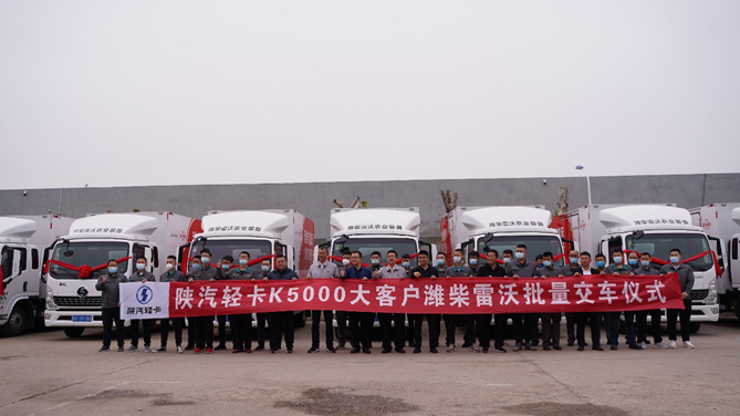 此次双方的合作,不仅是潍柴集团内部资源共享、优势互补,共同为客户进一步创造价值、提高服务竞争力的典范,更是国内高端轻卡助力高端农业的经典合作。双方将共同秉承“客户满意是我们的宗旨”核心价值观,为广大农机客户提供更快速、便捷、优质的服务,助力2022年夏收生产的全面丰收。5月14日,山东汽车销售公司在潍坊举行了隆重的批量交车仪式,向潍柴雷沃重工交付20辆陕汽轻卡德龍K5000。潍柴动力、潍柴雷沃重工、山东汽车相关领导出席本次活动。