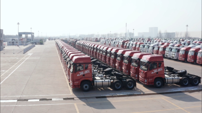 新年新景新气象,1月11日,江苏连云港,随着一声汽笛响起,装载着150辆一汽解放JH6牵引车的巨轮启航,驶向印度尼西亚雅加达港,这标志着解放以高质量营销全力拼抢重点海外市场取得了重要突破。