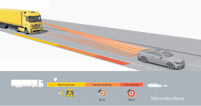2006年,奔驰卡车第一代主动辅助制动系统ABA面世,从而开启了自动紧急制动技术在卡车行业的应用;