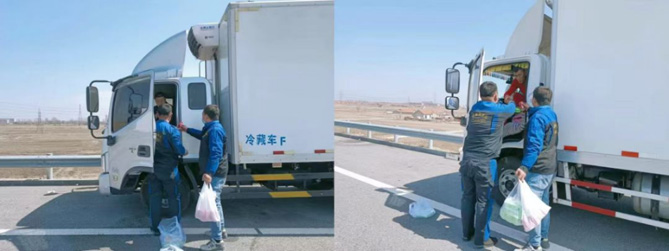 【欧航欧马可为高速滞留用户免费送去爱心午餐、水果、饮料及生活物资】
