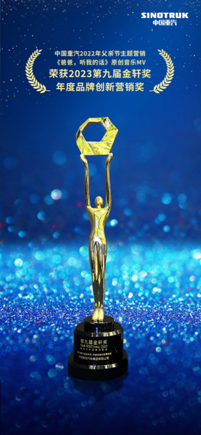 六月过半,父亲节即将到来。每到父亲节的节点,各大品牌均不约而同以致敬父爱为主旋律开展营销活动。2022年父亲节期间,一向在营销上“亮点频现”的中国重汽,暖心推出《爸爸,听我的话》原创音乐MV,邀请卡车家庭的孩子们唱出对爸爸的关爱,用一份特别的父亲节礼物,向已为人父的卡车司机表达敬意,在父亲节流量高峰期成功突出重围,斩获中国汽车营销权威奖项金轩奖授予的“年度品牌创新营销奖”。