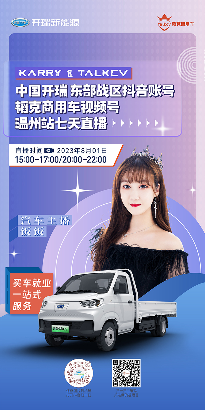今日2场开瑞产品直播!欢迎关注韬克商用车视频号