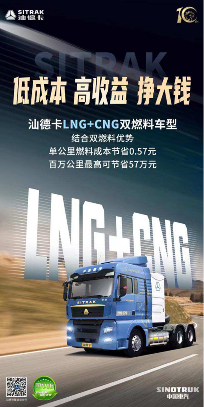 全新LNG+CNG双燃料中国重汽汕德卡G7S燃气车 让效益最大化