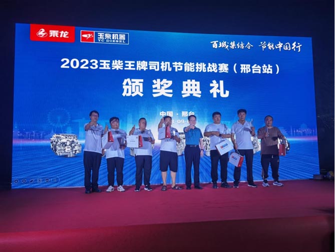 活动现场,乘龙与玉柴领导携手为此前王牌司机节能挑战赛(邢台站)的6位获奖选手颁奖,同时邀请他们将自己的用车体验及节油经验进行分享。乘龙H5超轻版2.0的优异性能,搭配选手们的高超行车技巧,得到了在座卡友的高度认可和共鸣。