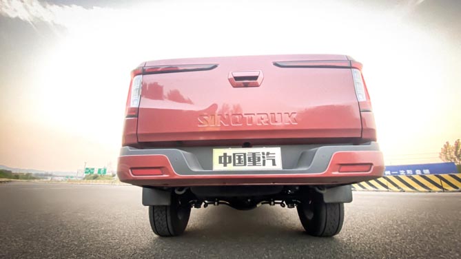醒目的“中国重汽”塔标,表明这款全新皮卡与中国重汽重卡一脉相承,在产品的可靠性和一致性方面拥有强大背书。