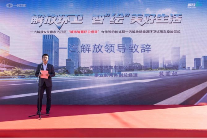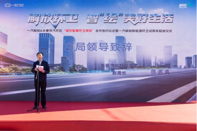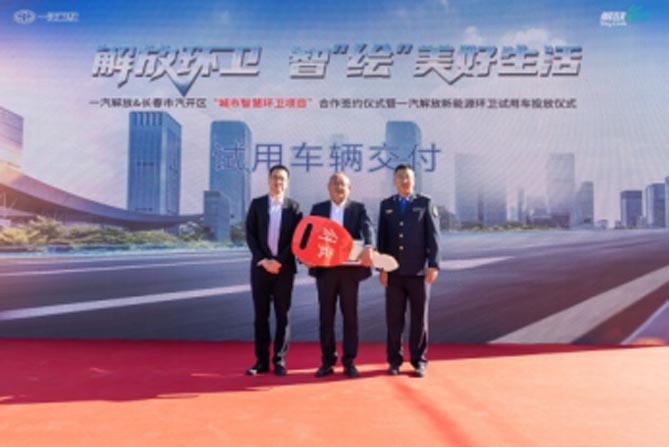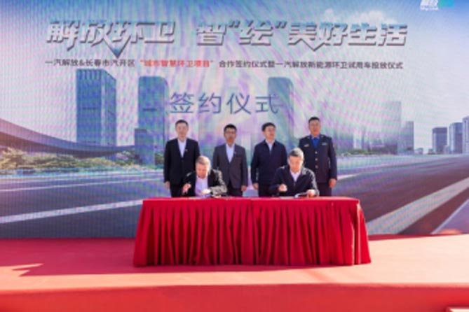 为助力吉林省公共领域电动化转型,10月19日,以“解放环卫 智‘绘’美好生活”为主题的一汽解放&长春市汽开区“城市智慧环卫项目”合作签约仪式暨一汽解放新能源环卫试用车投放仪式在长春市隆重举行。