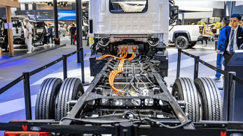 作为轻型商用车的代表,江铃乐行E路达以全球首创的四大行业技术重新定义纯电轻卡新标准。透过现场展出的江铃乐行E路达底盘可见,运用的全球首发中置一体化电池包技术,实现车辆高续航、强安全、更快充。全球首发的扁线高扭矩电机技术,可满足全地形满载运输的工况性能。同时,全球首发SiC多合一控制器技术,能够增大功率,实现减负、多拉、多跑的高效运营。全球首发电子液压制动EHB技术则拥有更好的刹车稳定性和动能回收效率。