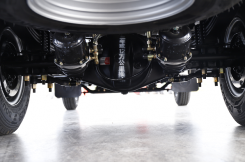 车桥方面,德龍G1前桥为汉德HDZ02/2.2t免维护前桥,后桥为汉德的HDZ260单级免维护后桥。速比为4.33,主减速器的换油周期为12万公里。桥壳疲劳寿命均值为100万次,最大承载较同类竞品高18%。