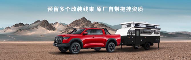 充沛的物资保障,是冬季自驾出游的基础。2023款越野炮车箱尺寸达到1520*1520*540mm,可以轻松容纳出行所需装备,包括雪铲、脱困板、气泵等出行必备装备,以及饮用水、食物、急救箱、工具箱、帐篷等户外生活物资,让你“重装”上阵有备无患。车上还预留多个改装线束和开关,自带拖挂资质和拖车防摆功能,可合法拖挂房车、机车等上路,让你轻松驾驭冬天的户外生活。