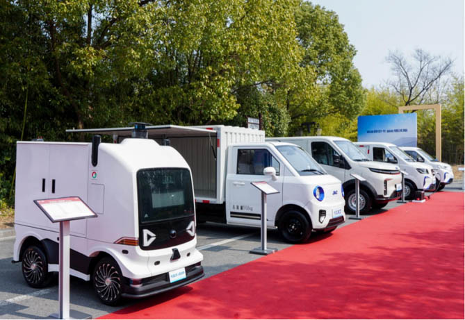 新能源物流车江淮1van旗下拥有2-4方卡拉、6-7方蓝猫、8方以上Van宝路,加上全自动无人配送车,将多维度助力物流最后一公里高效送达,为女性用户以及更多年轻用户带来高效灵活绿色的城配运输全场景选择。