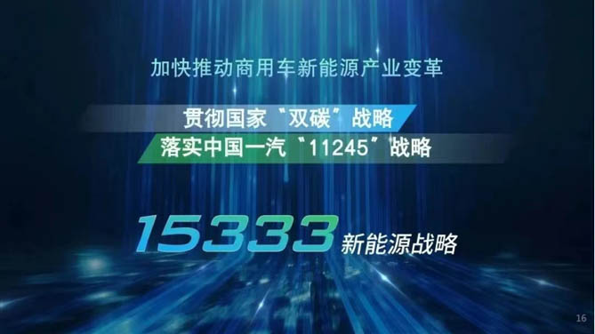 早在三年前,一汽解放以行动响应国家“双碳”战略——成立新能源事业部,并在大会上发布解放“15333”新能源战略,即“蓝途行动”。该战略详细规划了技术路线、销量目标和研发投入等关键布局,旨在实现新能源商用车在重、中、轻、微、客五大整车产品平台的全面覆盖,同时涵盖纯电动、混合动力、燃料电池三条技术路线。一汽解放还制定了雄心勃勃的销量目标:到2025年,新能源整车销量达到12万辆,占总销量的20%;到2030年,新能源整车销量达到32万辆,占总销量的50%;到2035年,新能源整车销量达到50万辆,占总销量超过70%。为实现这些目标,一汽解放将大幅增加研发投入,确保新能源研发费用在总研发费用中的占比逐年上升。