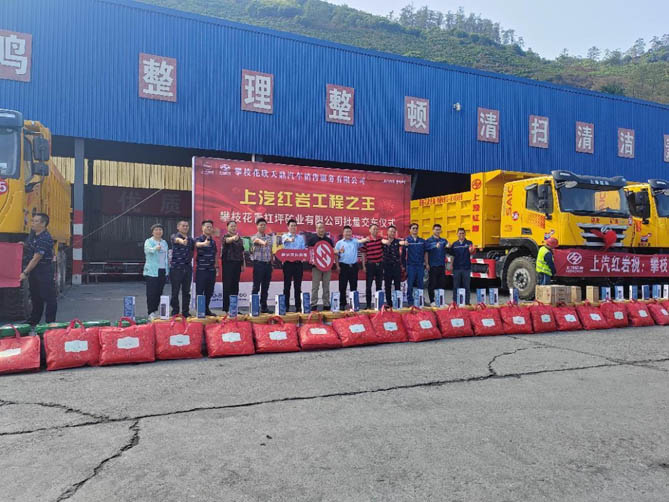 攀枝花位于四川省西南边陲,矿产资源十分丰富。此次交付的用户主要负责矿山原矿开采及加工运输,在短途转运环节有着巨大的运输需求。矿山运输的特点是运量大、品种多、巷道狭窄、运距长短不一、线路复杂、可见距离短,因而运输作业复杂、车辆维护检修困难、运营安全要求高。有着“工程之王”之称的上汽红岩杰狮H6交付后将在攀枝花矿石运输中,为提升作业效率增添助力。杰狮H6自卸车搭载国六科索C9发动机,无惧矿山复杂路况,时刻保持强劲动力,实现轻松爬坡。加上独特的DPF被动再生技术,车辆在运输过程中无需强制驻车再生,实现“全勤不停车”。此外,车辆还配备了节油开关,可根据轻载、中载、重载工况分别输出70%、80%、100%的动力,既经济适用,又环保低碳。