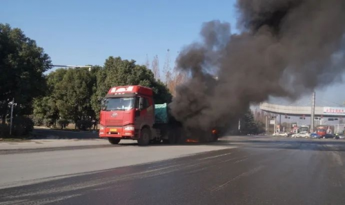 正常行驶过程中使用刹车,刹车片和刹车鼓的温度正常升高,不会有安全隐患。一旦卡车出现刹车抱死情况,刹车片和刹车鼓的温度就会异常升高,这个时候车辆就会存在重大的安全隐患。首先当刹车片和刹车鼓温度达到300°持续5分钟左右,刹车片和刹车鼓的摩擦力急剧下降,这个时候刹车,就会出现刹不住车或全车无刹车的情况。当刹车片和刹车鼓温度达到500°左右,整个刹车鼓、钢圈就会变红。而轮胎的燃点是350°,达到燃点,轮胎很快就会燃烧起来。而刹车鼓从正常温度达到500°,最快仅需20几秒。所以,一旦出现刹车抱死,就很容易导致轮胎燃烧,从而引起车辆及货物燃烧,造成重大的人身和财产损失。
