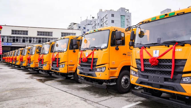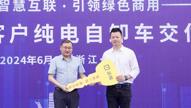 6月6日,百台远程 423kWh 纯电自卸车交车仪式在温州顺利举行,该订单创下了国内大电量城建渣土车最大订单纪录。这批远程423kWh纯电自卸车交付后将充分发挥其在动力、可靠和高效等方面的优势,显著提高客户新能源运力水平,为构建温州零碳绿运生态提供重要助力。