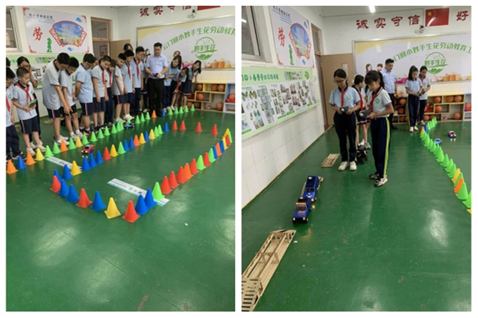 科普动手实践活动-操控性体验环节,孩子们在科普团队专家的指导下,学习了如何制作具有遥控功能的车辆模型,并亲手调试了模型的速度、转向等参数。孩子们通过遥控器操控自己的车模在赛道上飞驰,感受到了科技带来的乐趣和魅力。