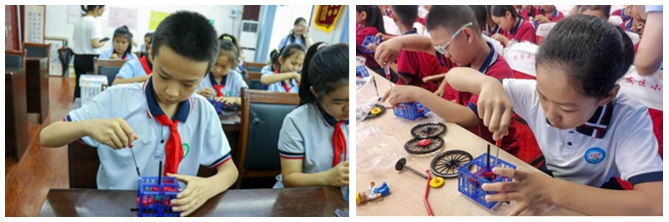 科普动手实践活动-指南车模型制作,科普团队专家为孩子们进行了指南车模型制作的科普讲座,并指导孩子们亲自动手制作指南车模型,在老师的耐心指导下,孩子们利用提供的材料和工具,一步步完成了模型的组装和调试。在制作过程中不仅锻炼了孩子们的动手能力,还学会了如何运用科学知识解决实际问题的能力。
